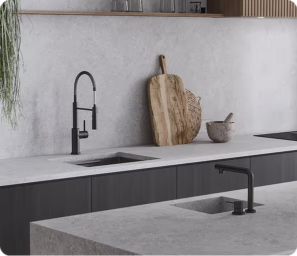 We specialize in laminate, wood veneer, and composite materials, and we partner with trusted vendors for stone, metal, and solid-surface countertops.