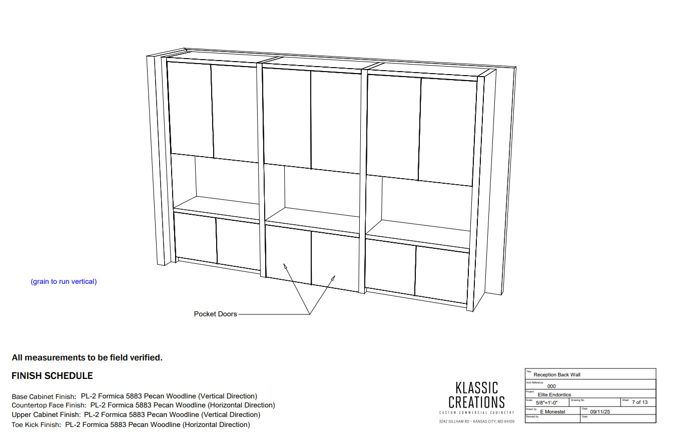Klassic Creations provided full-service casework design and fabrication for Elite Endodontics KC, with a focused goal of balancing day-to-day functionality with a refined, high-end aesthetic that fully realized the designer’s vision.