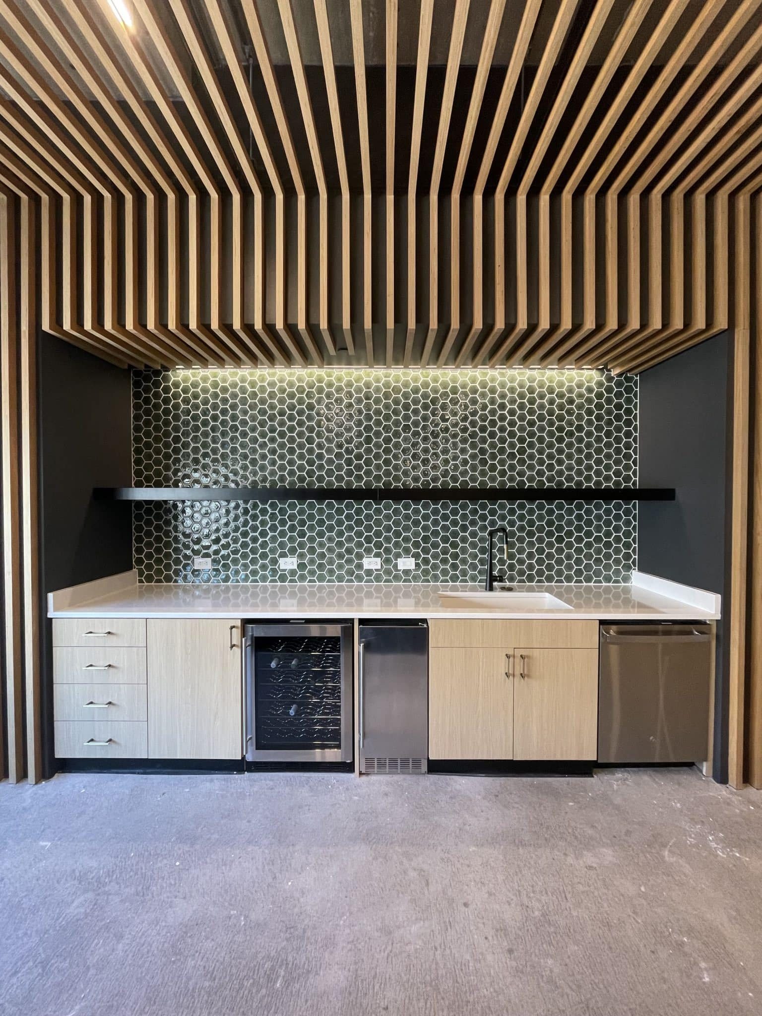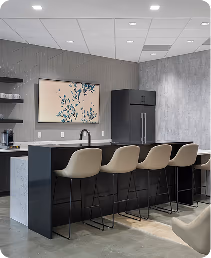 This modern office project required cabinetry and casework that reflected Merge KC’s sleek, collaborative brand identity. Klassic Creations designed and built a range of pieces, including reception desks, conference room cabinetry, and kitchen installations—all fabricated in-house to ensure precision and durability.