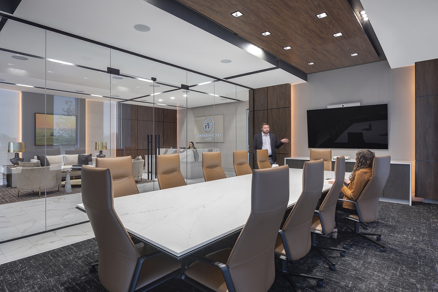 Premium materials and finishes reflecting the firm’s refined brand image.
