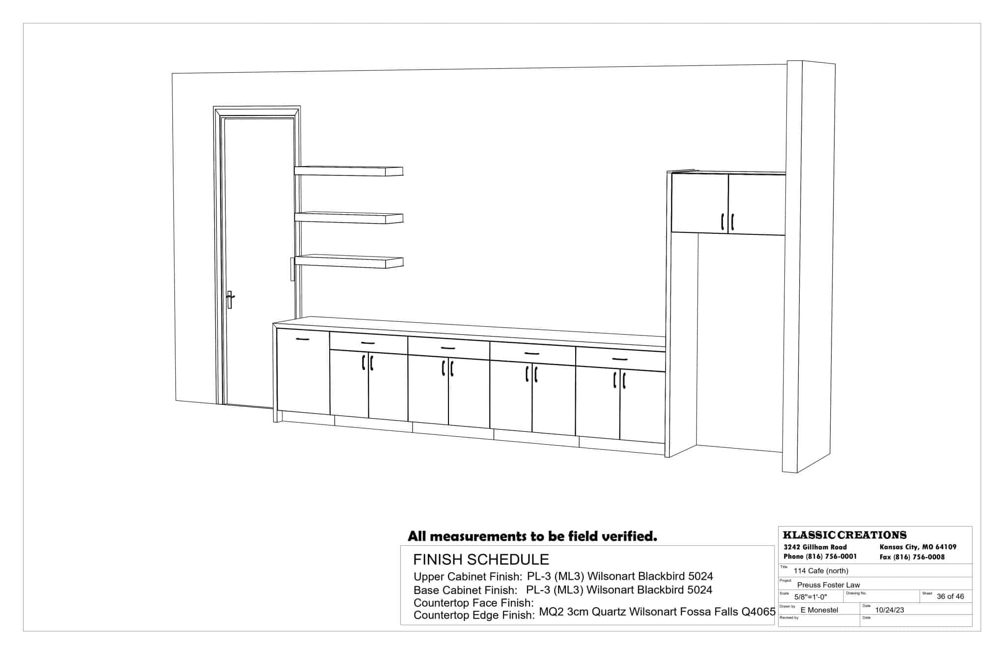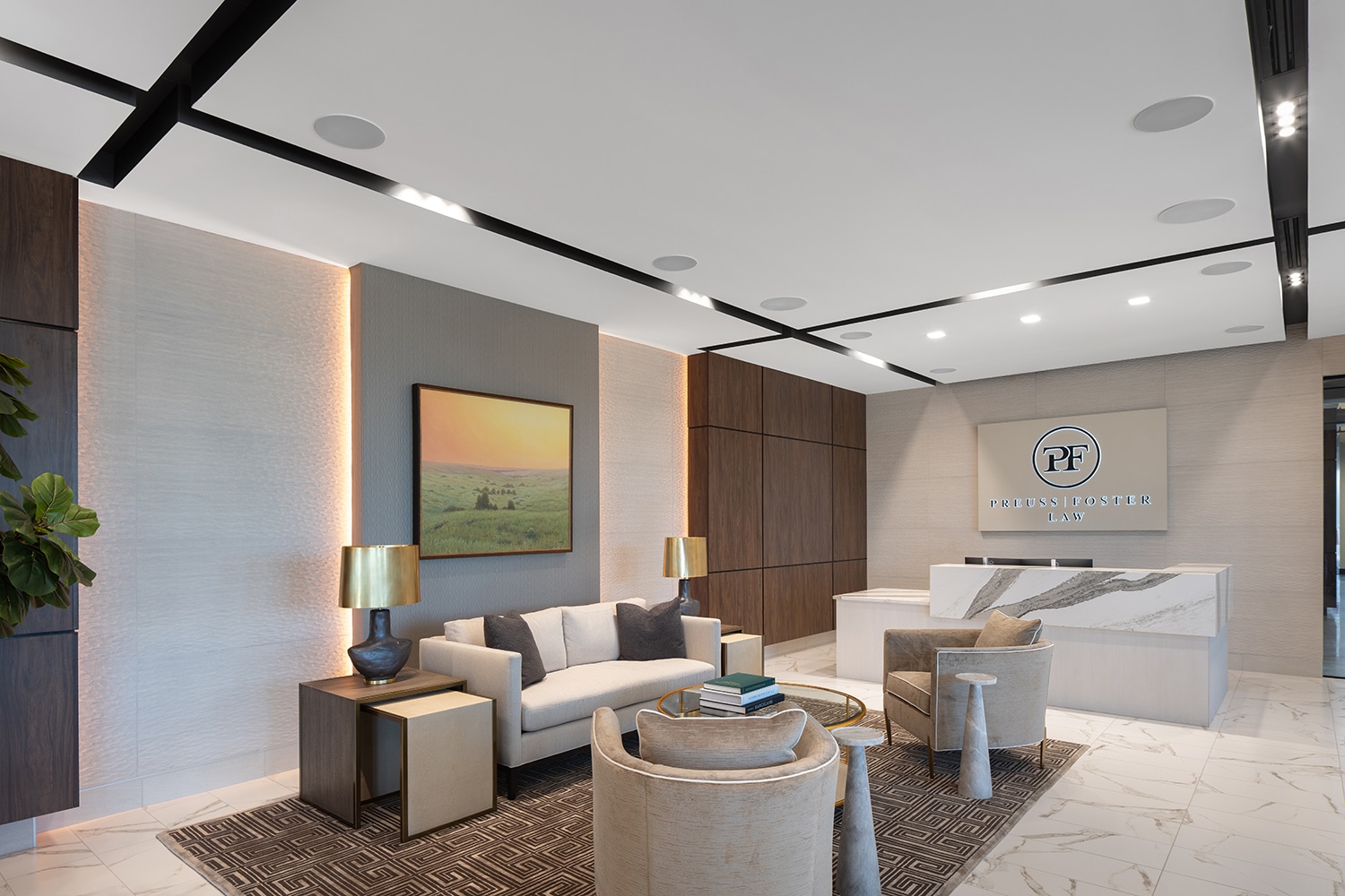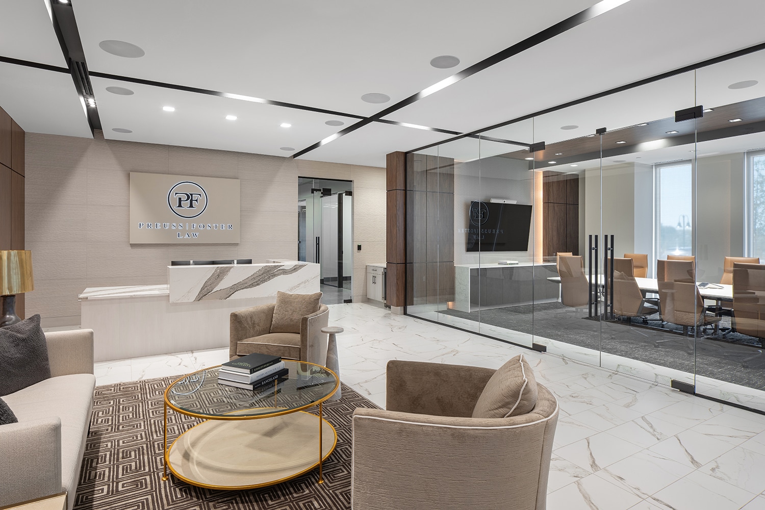 For the Preuss-Foster Law Office interior, Klassic Creations produced high-end custom casework that elevated the firm’s professional setting. The design incorporated rich finishes and clean detailing to create a space that communicates trust, sophistication, and organization.
