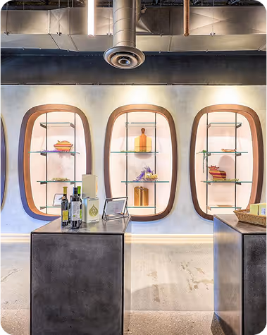 Every component is fabricated in-house to match architectural specs and finished with materials built to endure high-traffic use—without compromising aesthetics or functionality.